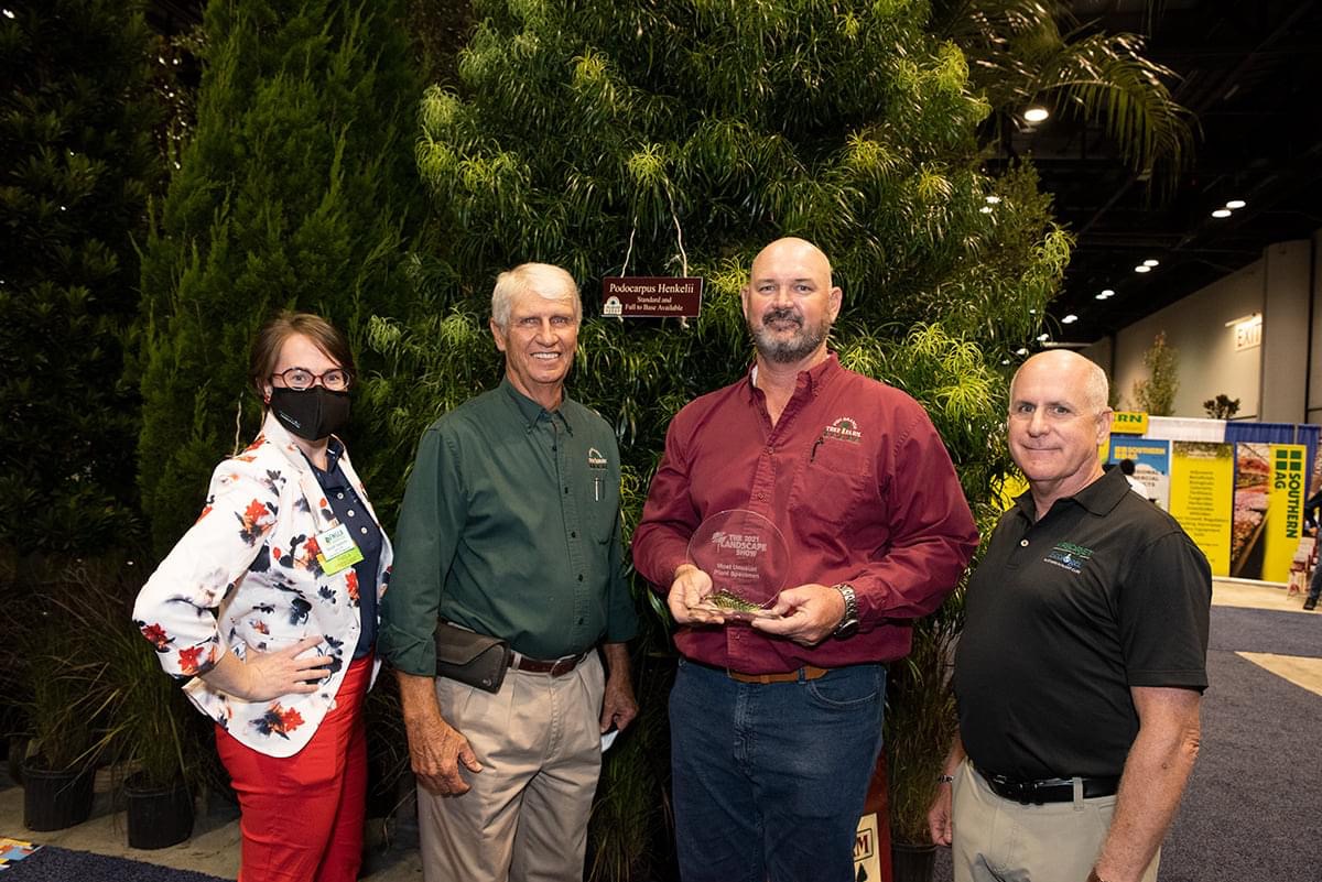 We are proud to announce that Fish Branch was awarded the ‘Most Unusual Single Plant Specimen’ Award at the FNGLA Together Again 2021 Landscape show in Orlando, FL for our new Podocarpus Henkelii!!