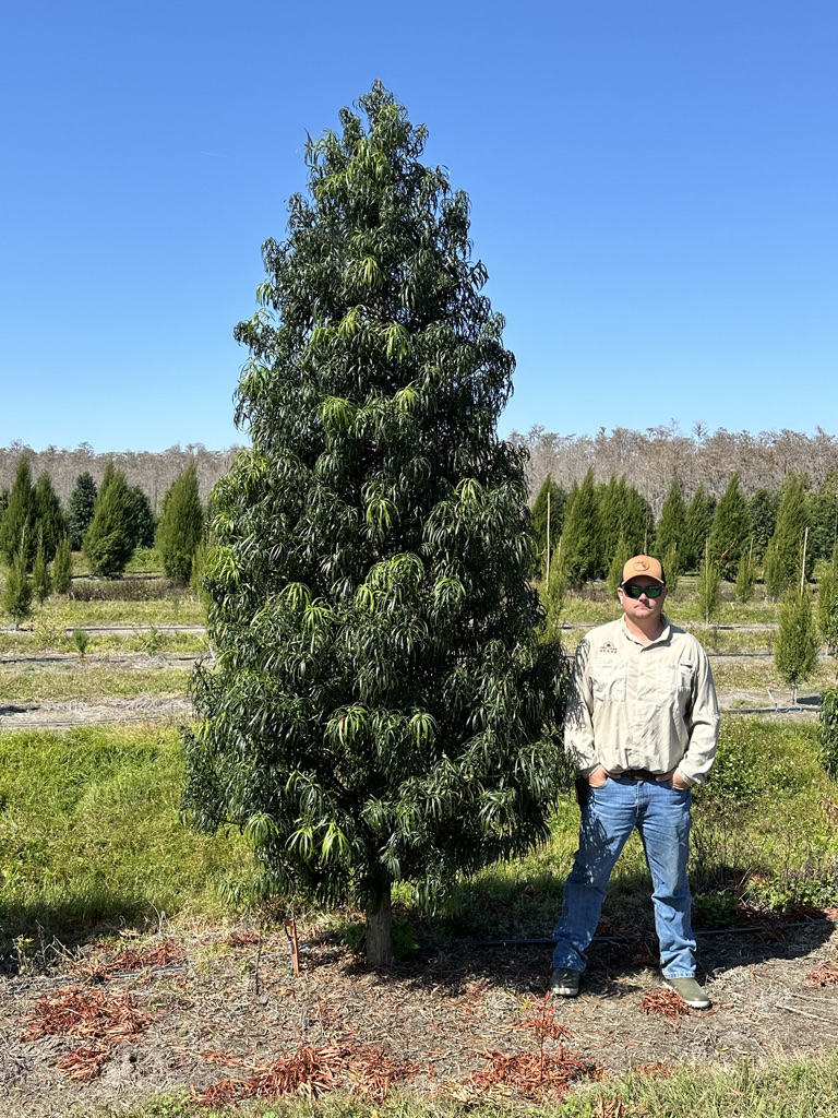 This unique podocarpus is new to Florida’s market. Striking contrast between newest emerging foliage (light green) and older foliage (dark green). Long recurved leaves provide an interesting, weeping appearance.